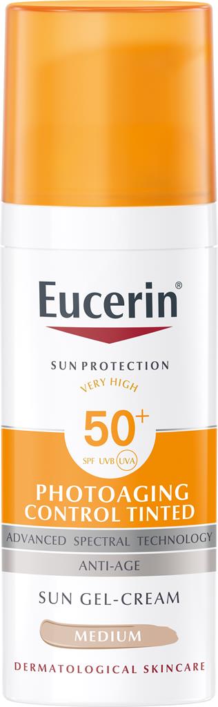 Eucerin Sun Photoaging Control Tinted SPF50+ är en tonad solskyddskräm som ger en jämnare hudton. Innehåller